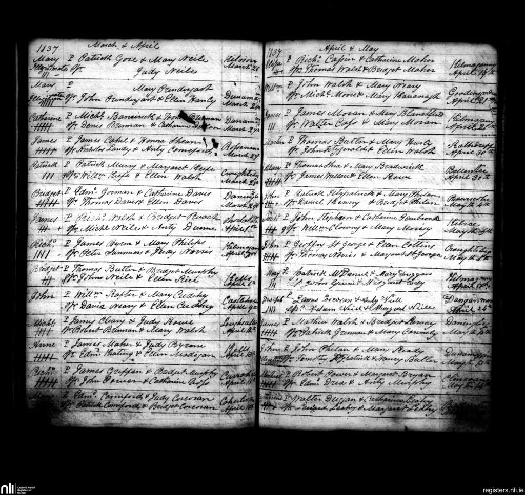 Dunamaggan; County of Kilkenny; Diocese of Ossory. Baptisms, Mar. 1837 to May 1837