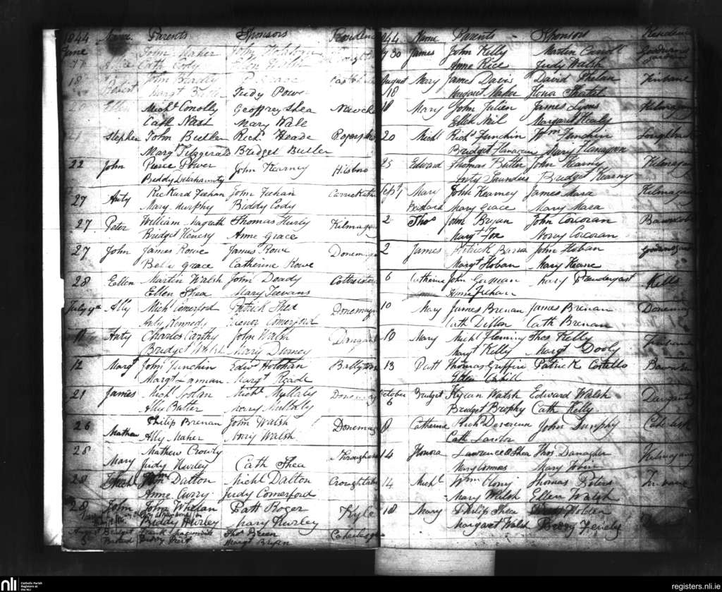 Dunamaggan; County of Kilkenny; Diocese of Ossory. Baptisms, June 1844 to Oct. 1844