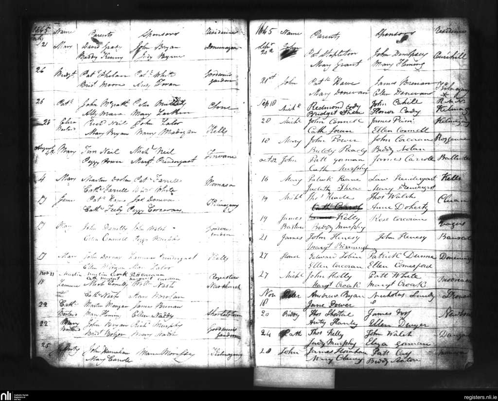Dunamaggan; County of Kilkenny; Diocese of Ossory. Baptisms, July 1845 to Nov. 1845