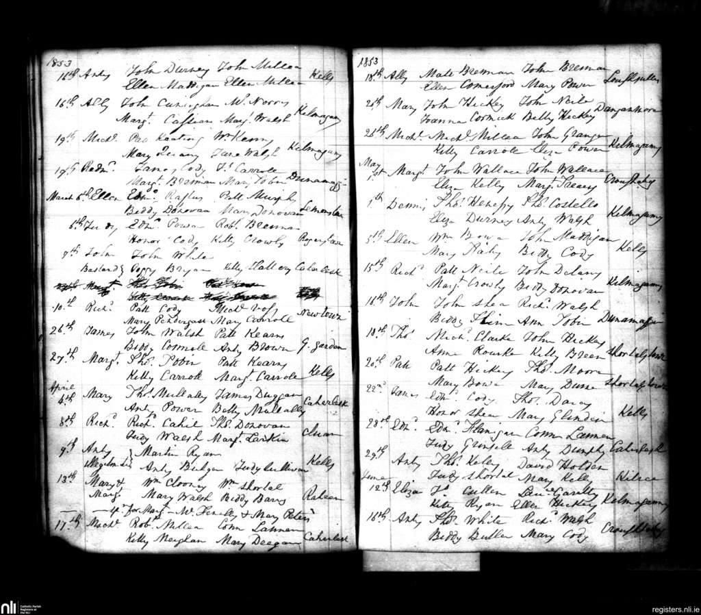 Dunamaggan; County of Kilkenny; Diocese of Ossory. Baptisms, Feb. 1853 to June 1853