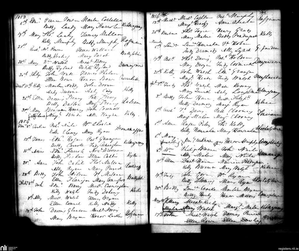 Dunamaggan; County of Kilkenny; Diocese of Ossory. Baptisms, Nov. 1853 to May 1854