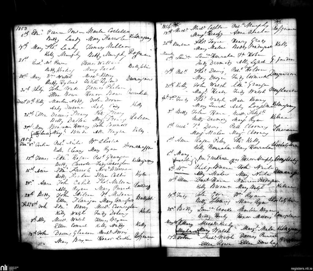 Dunamaggan; County of Kilkenny; Diocese of Ossory. Baptisms, Nov. 1853 to May 1854