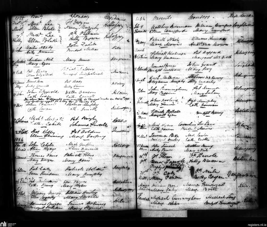 Dunamaggan; County of Kilkenny; Diocese of Ossory. Baptisms, Dec. 1855 to May 1856