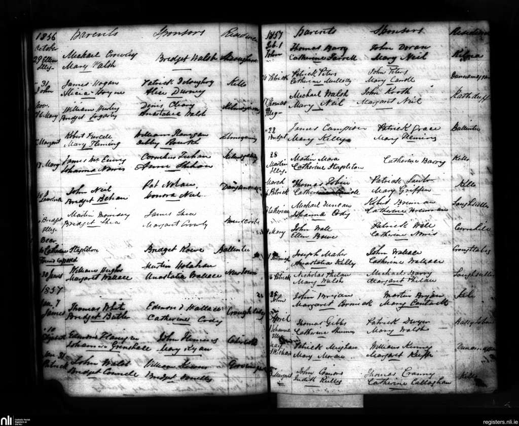 Dunamaggan; County of Kilkenny; Diocese of Ossory. Baptisms, Oct. 1856 to Apr. 1857