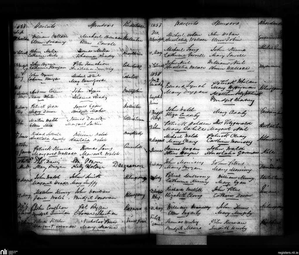 Dunamaggan; County of Kilkenny; Diocese of Ossory. Baptisms, Sep. 1857 to Feb. 1858