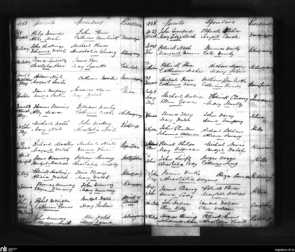 Dunamaggan; County of Kilkenny; Diocese of Ossory. Baptisms, Feb. 1858 to Aug. 1858
