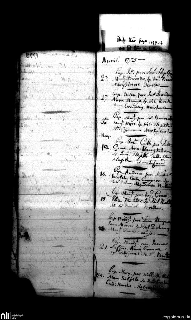 Freshford; County of Kilkenny; Diocese of Ossory. Baptisms, Apr. 1775 to May 1775