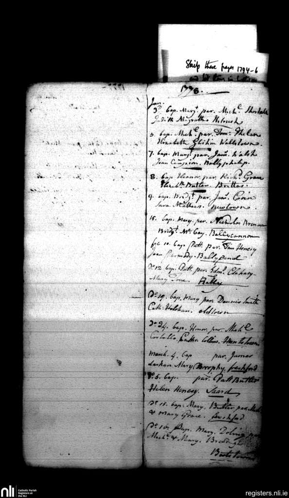 Freshford; County of Kilkenny; Diocese of Ossory. Baptisms, Jan. 1778 to Mar. 1778