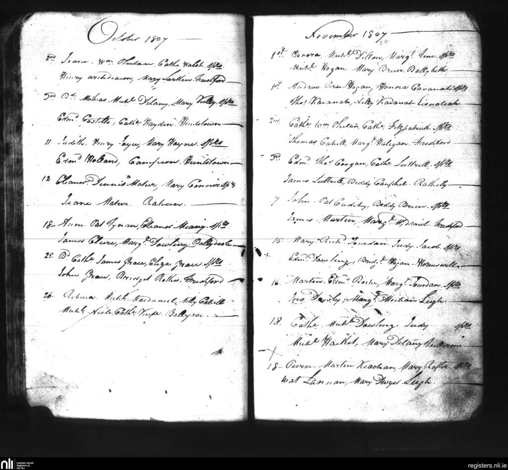 Freshford; County of Kilkenny; Diocese of Ossory. Baptisms, Nov. 1807 to Dec. 1807