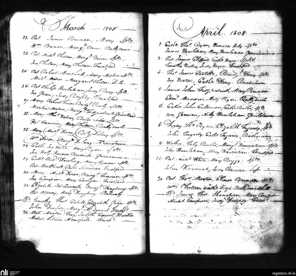 Freshford; County of Kilkenny; Diocese of Ossory. Baptisms, May 1808 to June 1808