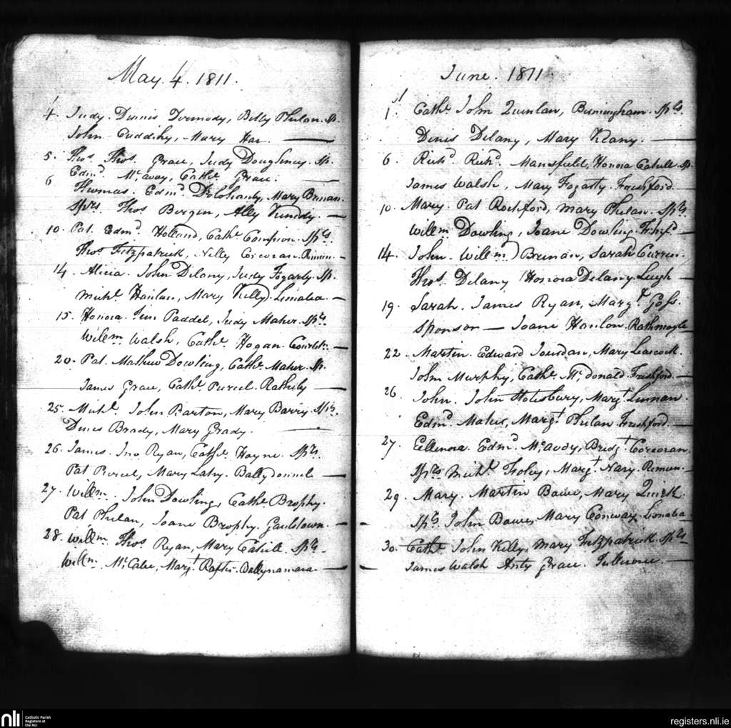 Freshford; County of Kilkenny; Diocese of Ossory. Baptisms, July 1811 to Aug. 1811