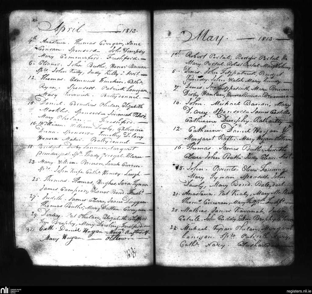 Freshford; County of Kilkenny; Diocese of Ossory. Baptisms, June 1813 to July 1813