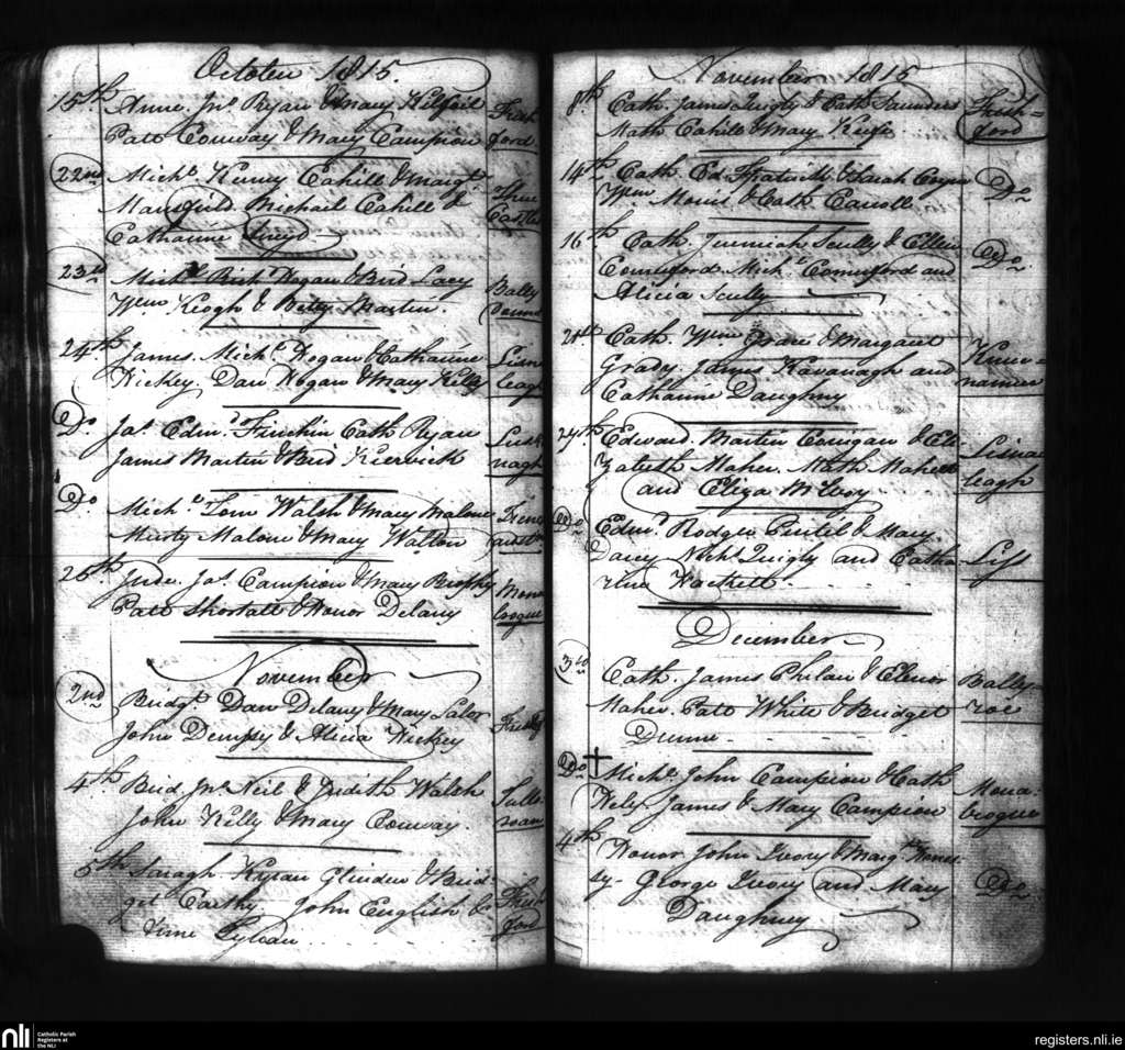 Freshford; County of Kilkenny; Diocese of Ossory. Baptisms, Dec. 1815