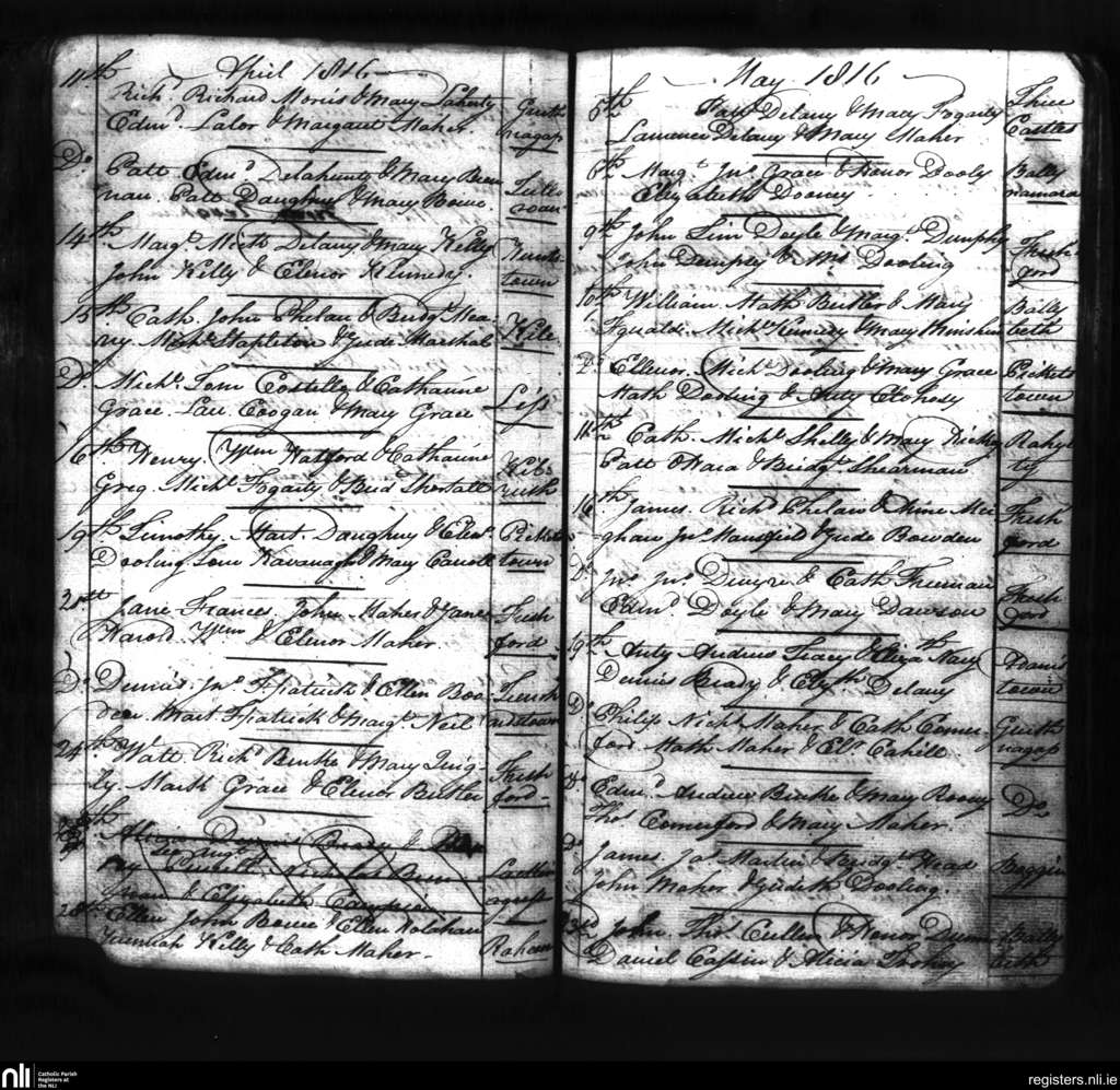 Freshford; County of Kilkenny; Diocese of Ossory. Baptisms, May 1816 to June 1816