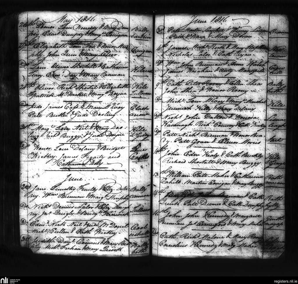 Freshford; County of Kilkenny; Diocese of Ossory. Baptisms, June 1816 to July 1816