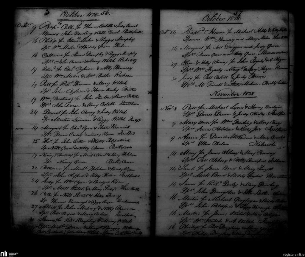 Freshford; County of Kilkenny; Diocese of Ossory. Baptisms, Oct. 1828 to Nov. 1828