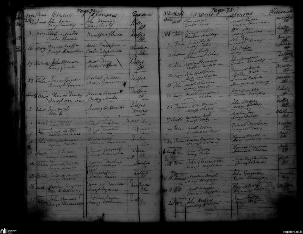 Freshford; County of Kilkenny; Diocese of Ossory. Baptisms, Feb. 1862 to May 1862