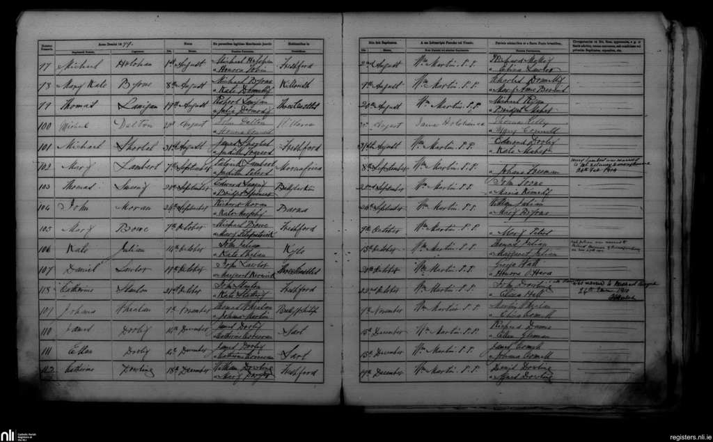 Freshford; County of Kilkenny; Diocese of Ossory. Baptisms, Aug. 1879 to Dec. 1879