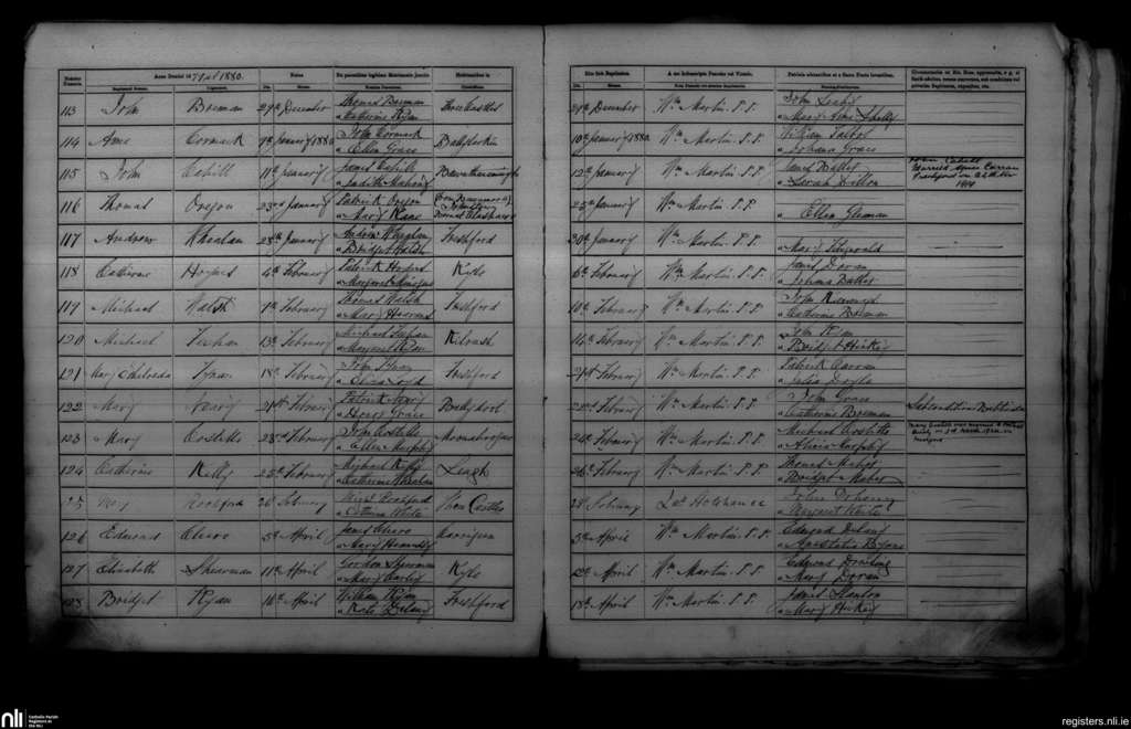Freshford; County of Kilkenny; Diocese of Ossory. Baptisms, Dec. 1879 to Apr. 1880