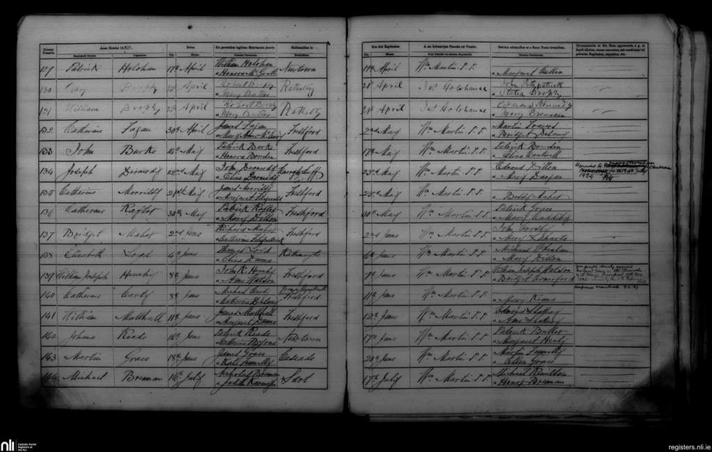 Freshford; County of Kilkenny; Diocese of Ossory. Baptisms, Apr. 1880 to July 1880