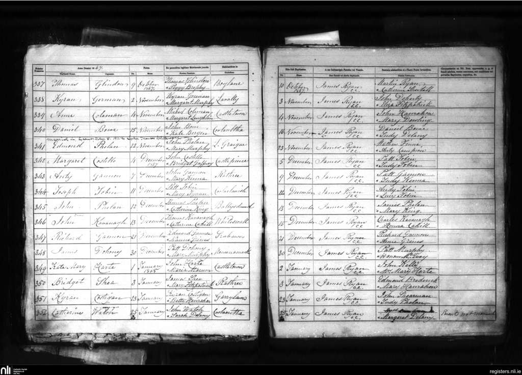 Galmoy; County of Kilkenny, Laois; Diocese of Ossory. Baptisms, Oct. 1867 to Jan. 1868
