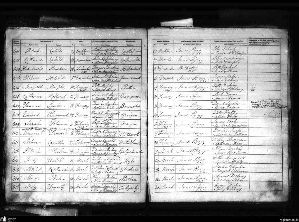 Galmoy; County of Kilkenny, Laois; Diocese of Ossory. Baptisms, Oct. 1868 to Mar. 1869