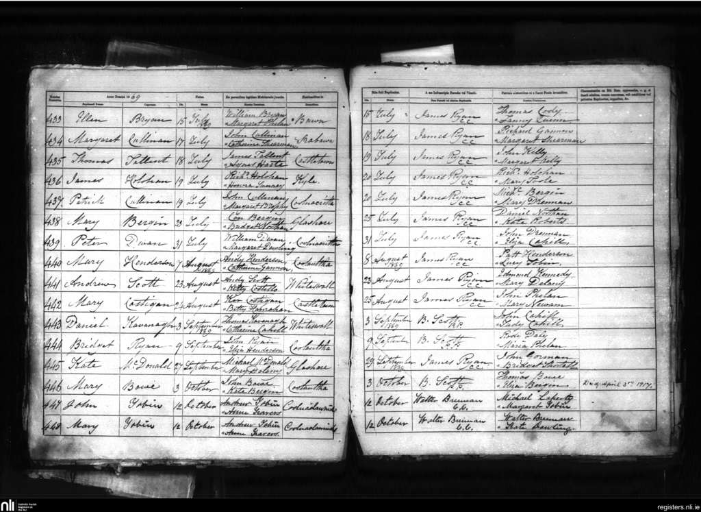 Galmoy; County of Kilkenny, Laois; Diocese of Ossory. Baptisms, July 1869 to Oct. 1869