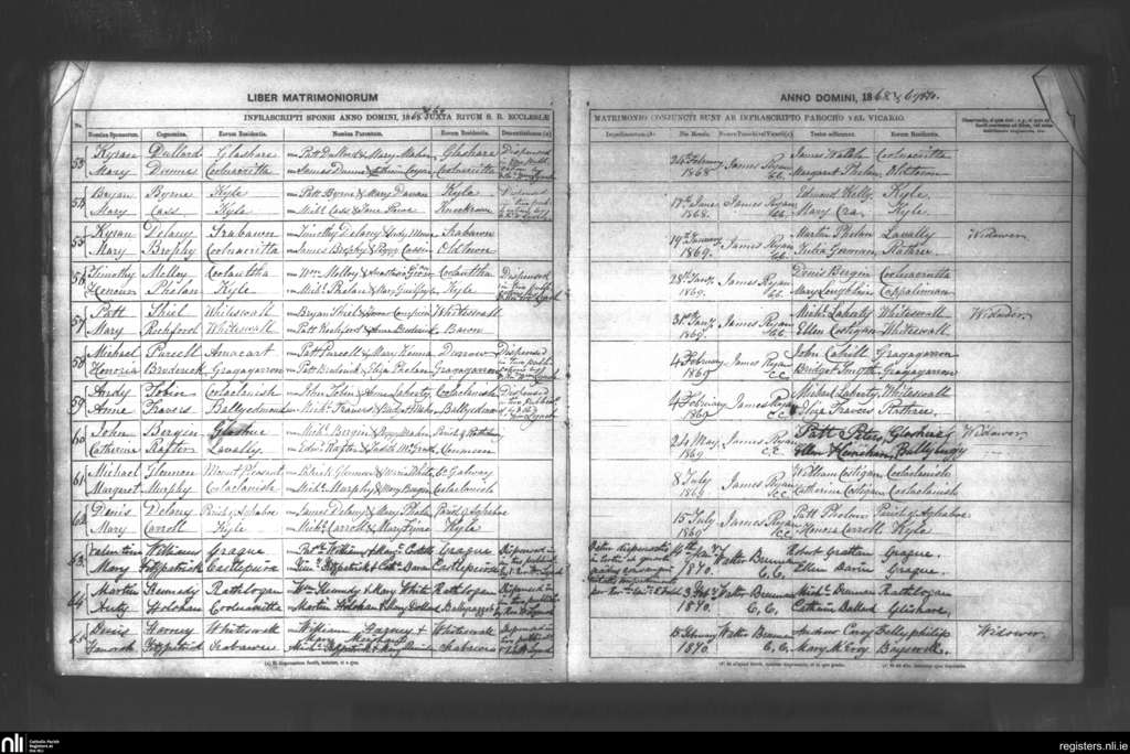 Galmoy; County of Kilkenny, Laois; Diocese of Ossory. Marriages, Feb. 1868 to Feb. 1870