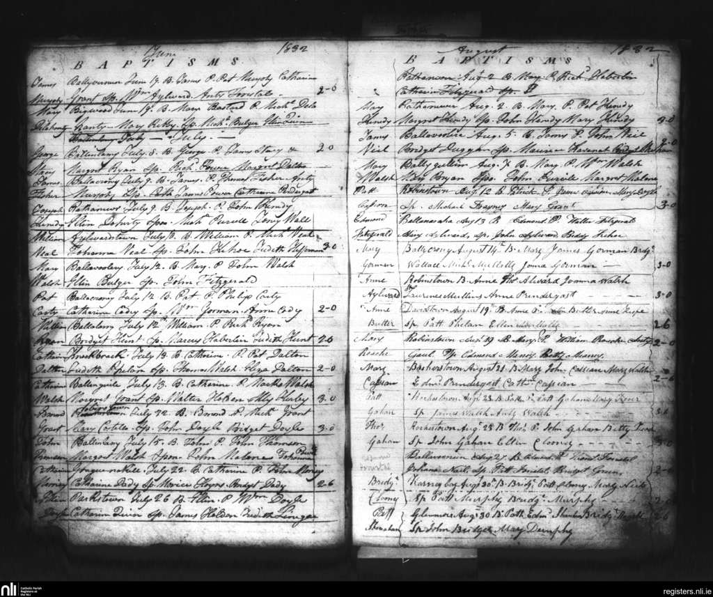 Glenmore; County of Kilkenny; Diocese of Ossory. Baptisms, June 1832 to Aug. 1832