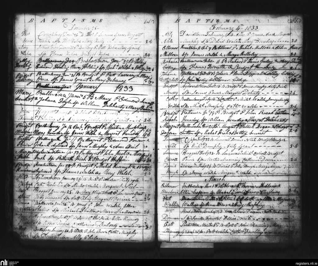 Glenmore; County of Kilkenny; Diocese of Ossory. Baptisms, Dec. 1832 to Mar. 1833