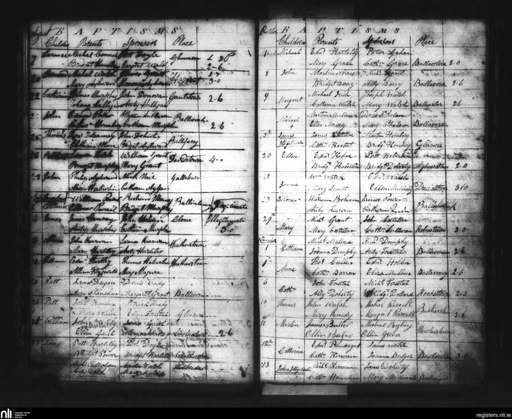 Glenmore; County of Kilkenny; Diocese of Ossory. Baptisms, Aug. 1833 to Nov. 1833