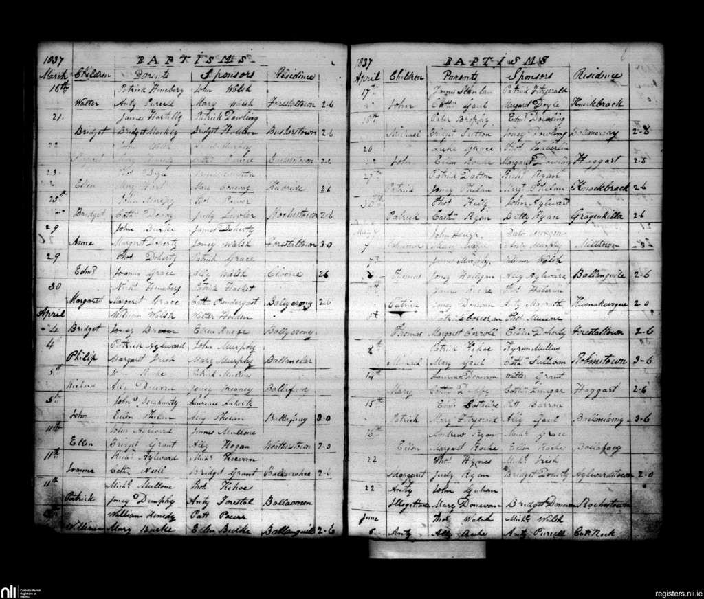 Glenmore; County of Kilkenny; Diocese of Ossory. Baptisms, Mar. 1837 to June 1837