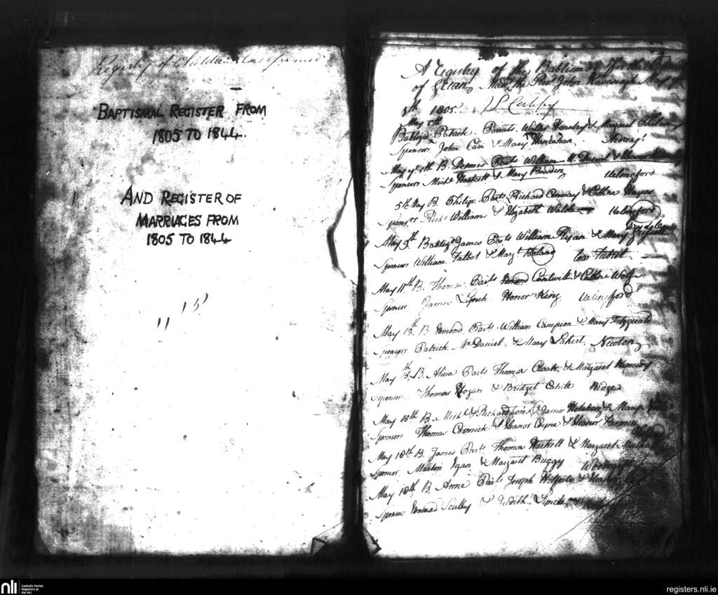 Urlingford; County of Kilkenny; Diocese of Ossory. Baptisms, May 1805