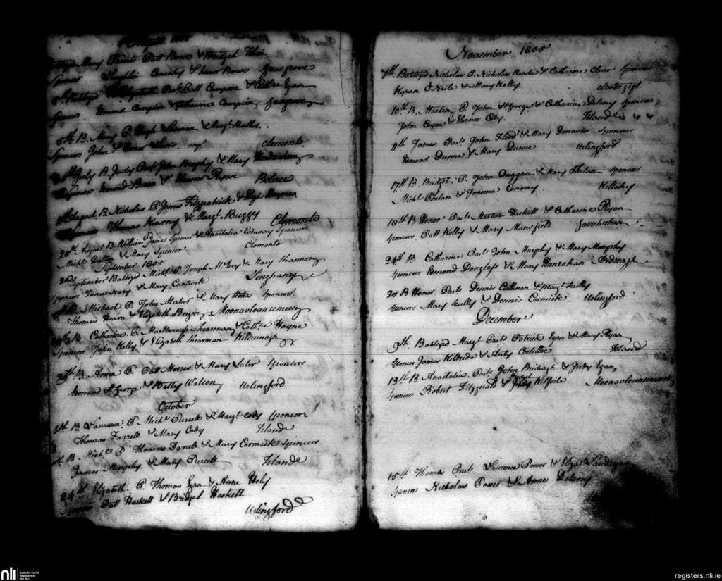 Urlingford; County of Kilkenny; Diocese of Ossory. Baptisms, July 1805 to Dec. 1805