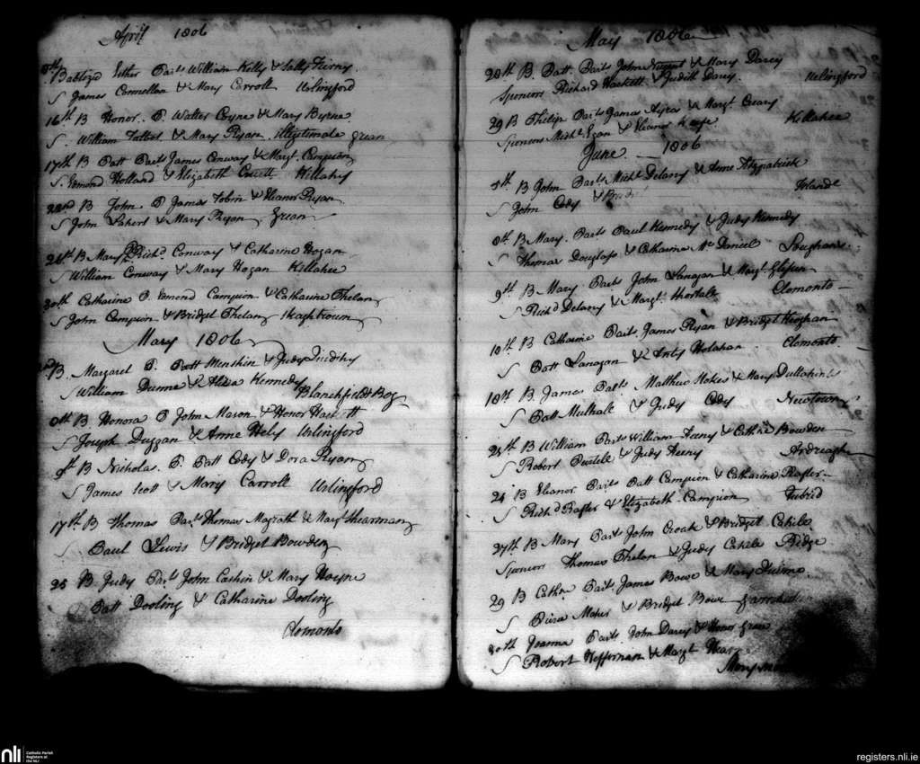 Urlingford; County of Kilkenny; Diocese of Ossory. Baptisms, Apr. 1806 to June 1806