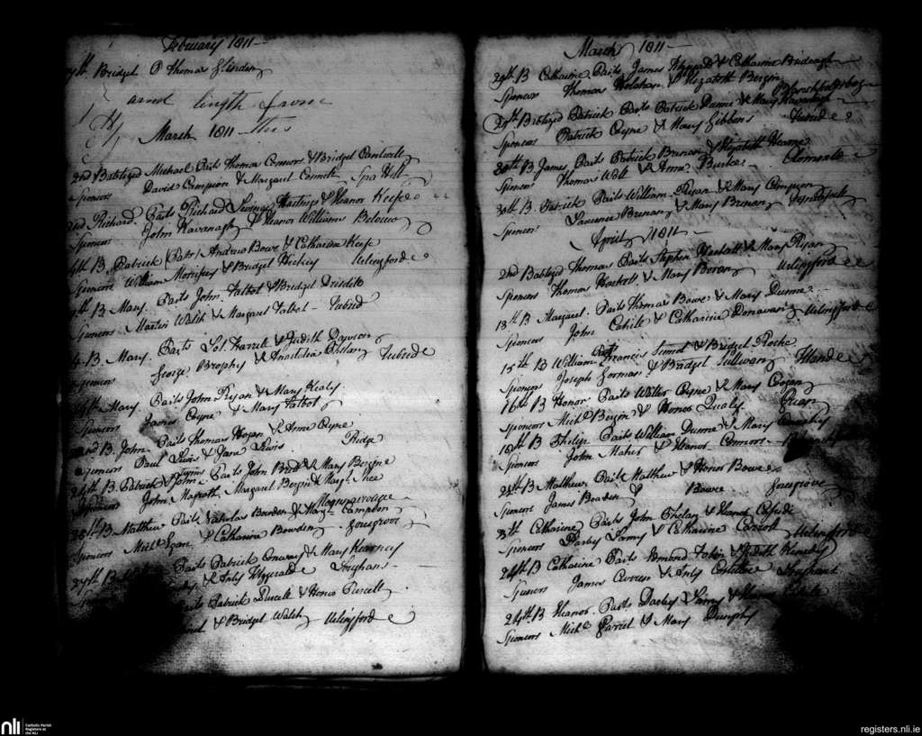 Urlingford; County of Kilkenny; Diocese of Ossory. Baptisms, Feb. 1811 to Apr. 1811