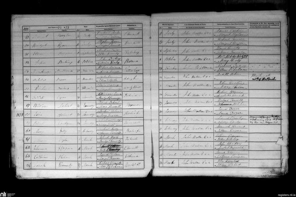 Urlingford; County of Kilkenny; Diocese of Ossory. Baptisms, July 1872 to Mar. 1873