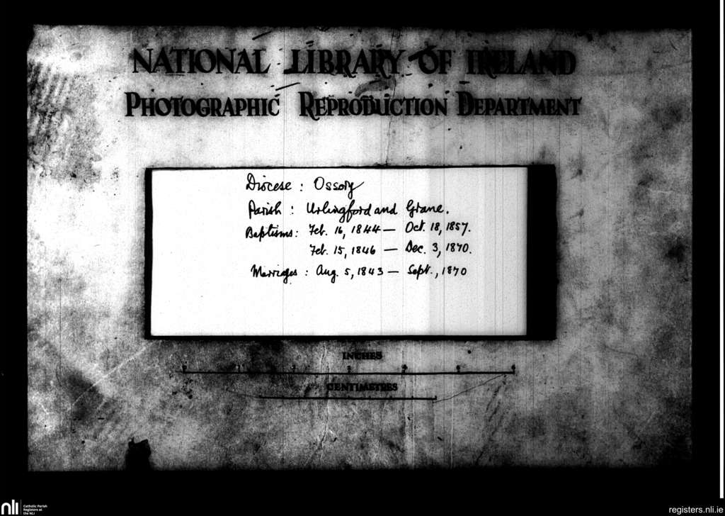 Urlingford; County of Kilkenny; Diocese of Ossory. Baptisms, Marriages