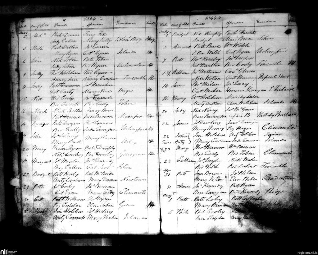 Urlingford; County of Kilkenny; Diocese of Ossory. Baptisms, June 1844 to Aug. 1844