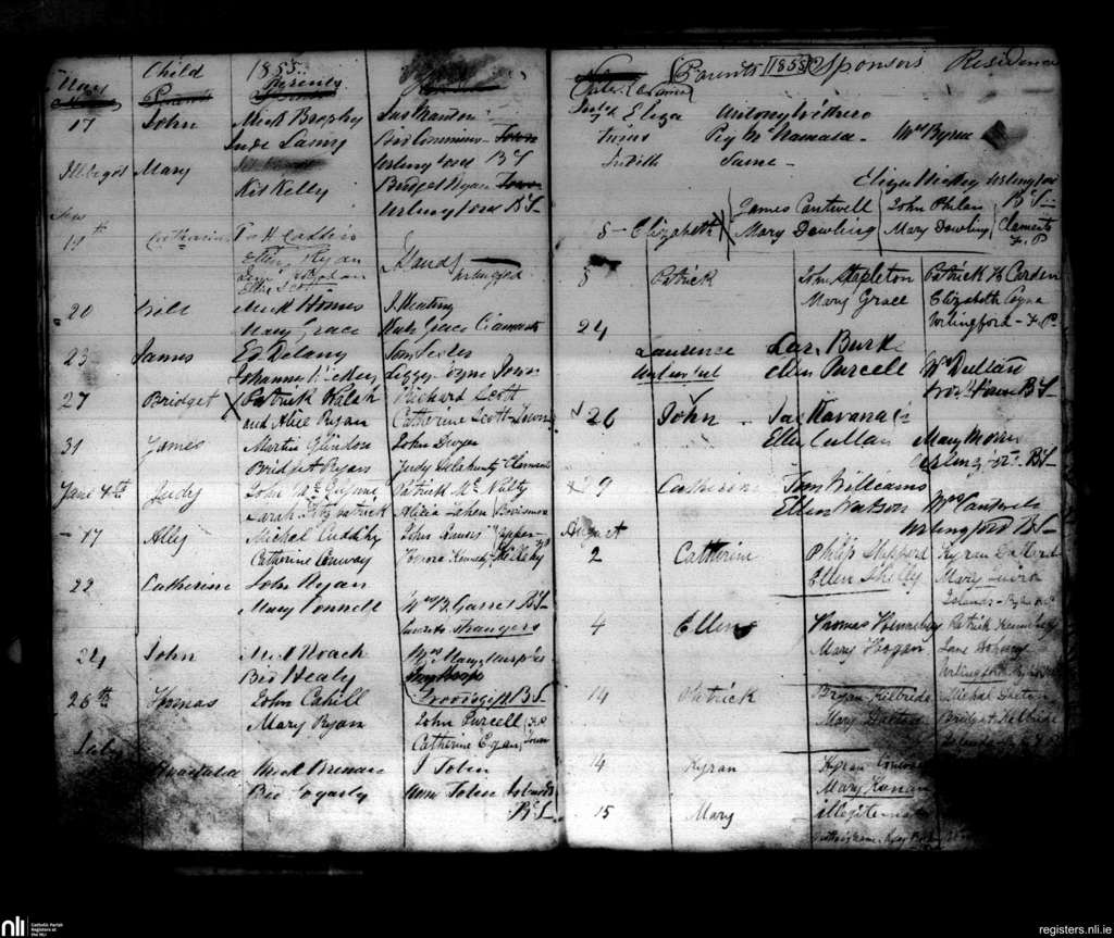Urlingford; County of Kilkenny; Diocese of Ossory. Baptisms, May 1855 to Aug. 1855