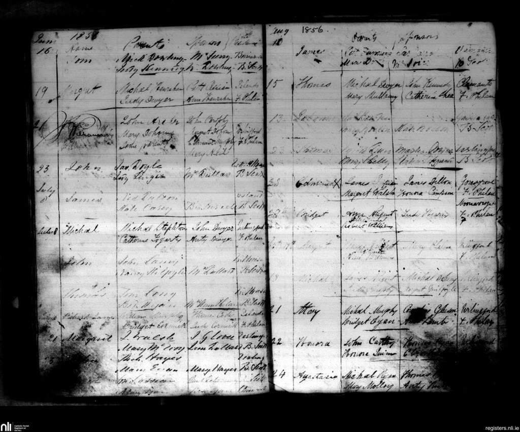 Urlingford; County of Kilkenny; Diocese of Ossory. Baptisms, June 1856 to Sep. 1856