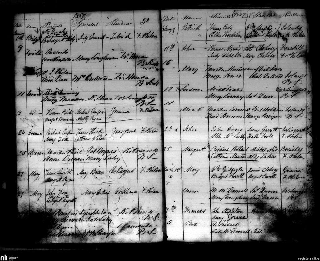 Urlingford; County of Kilkenny; Diocese of Ossory. Baptisms, Jan. 1857 to Mar. 1857