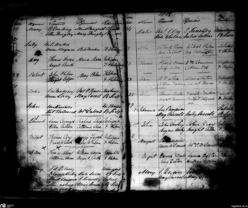 Urlingford; County of Kilkenny; Diocese of Ossory. Baptisms, May 1857 to July 1857