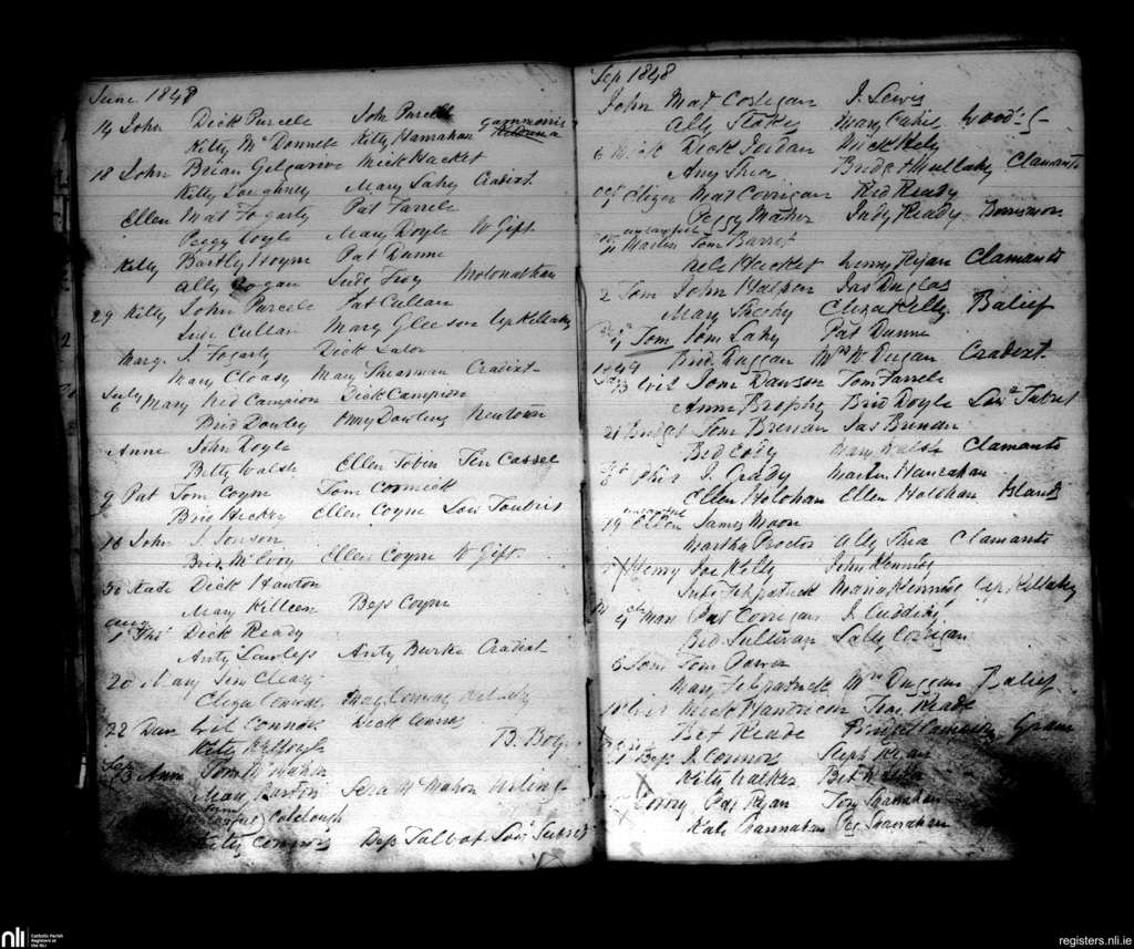 Urlingford; County of Kilkenny; Diocese of Ossory. Baptisms, June 1848 to Apr. 1849
