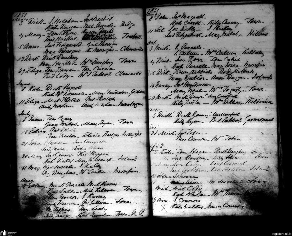 Urlingford; County of Kilkenny; Diocese of Ossory. Baptisms, May 1851 to Feb. 1852