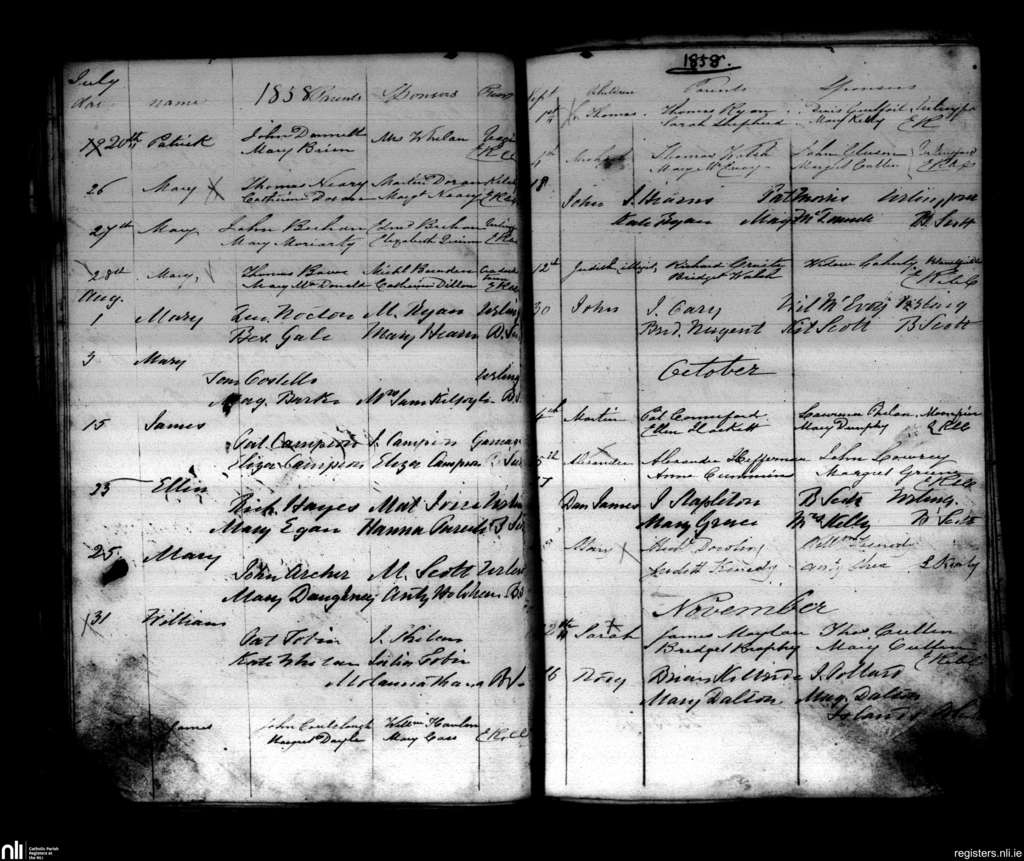 Urlingford; County of Kilkenny; Diocese of Ossory. Baptisms, July 1858 to Nov. 1858