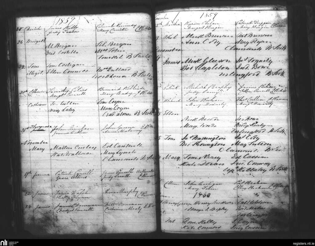 Urlingford; County of Kilkenny; Diocese of Ossory. Baptisms, Oct. 1859 to Jan. 1860