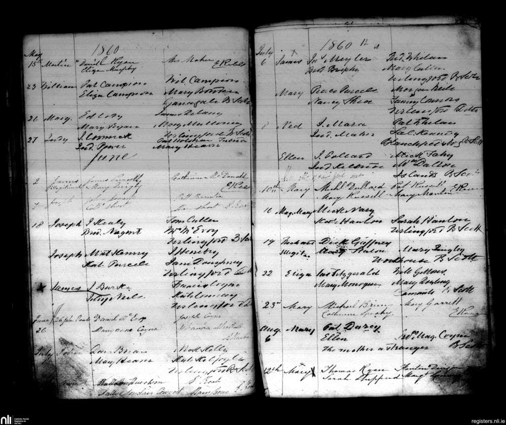 Urlingford; County of Kilkenny; Diocese of Ossory. Baptisms, May 1860 to Aug. 1860