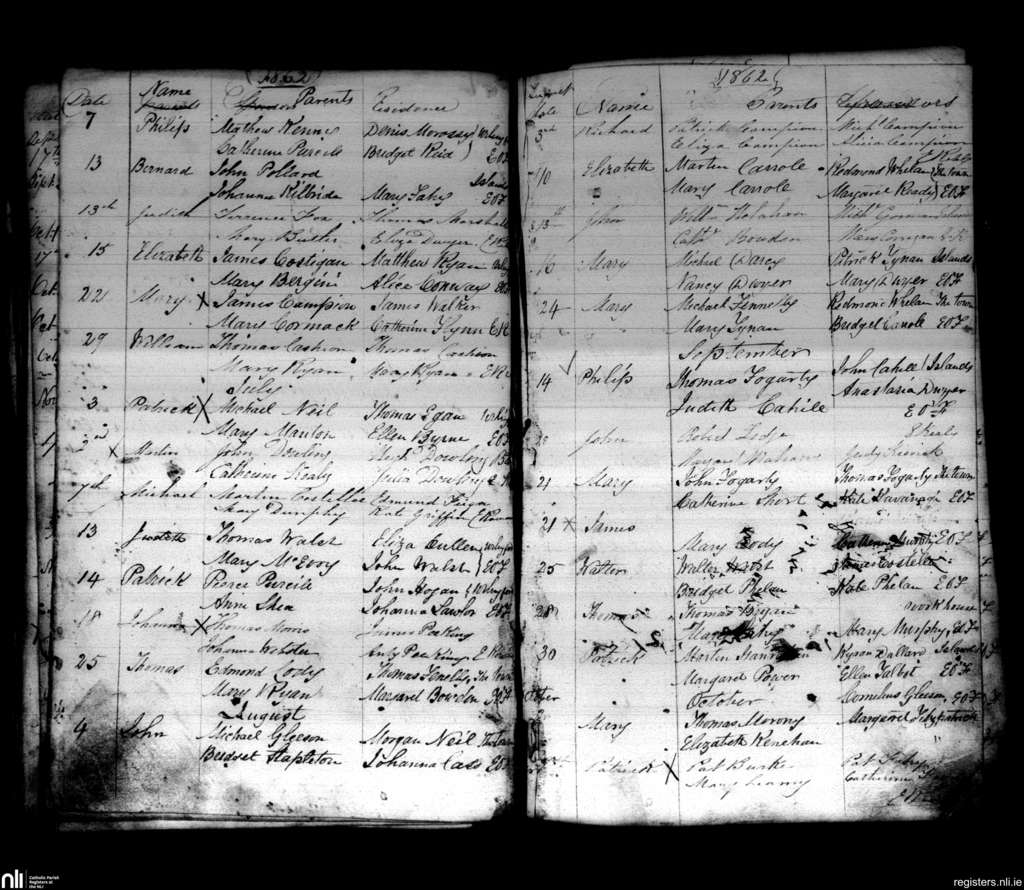 Urlingford; County of Kilkenny; Diocese of Ossory. Baptisms, June 1862 to Oct. 1862