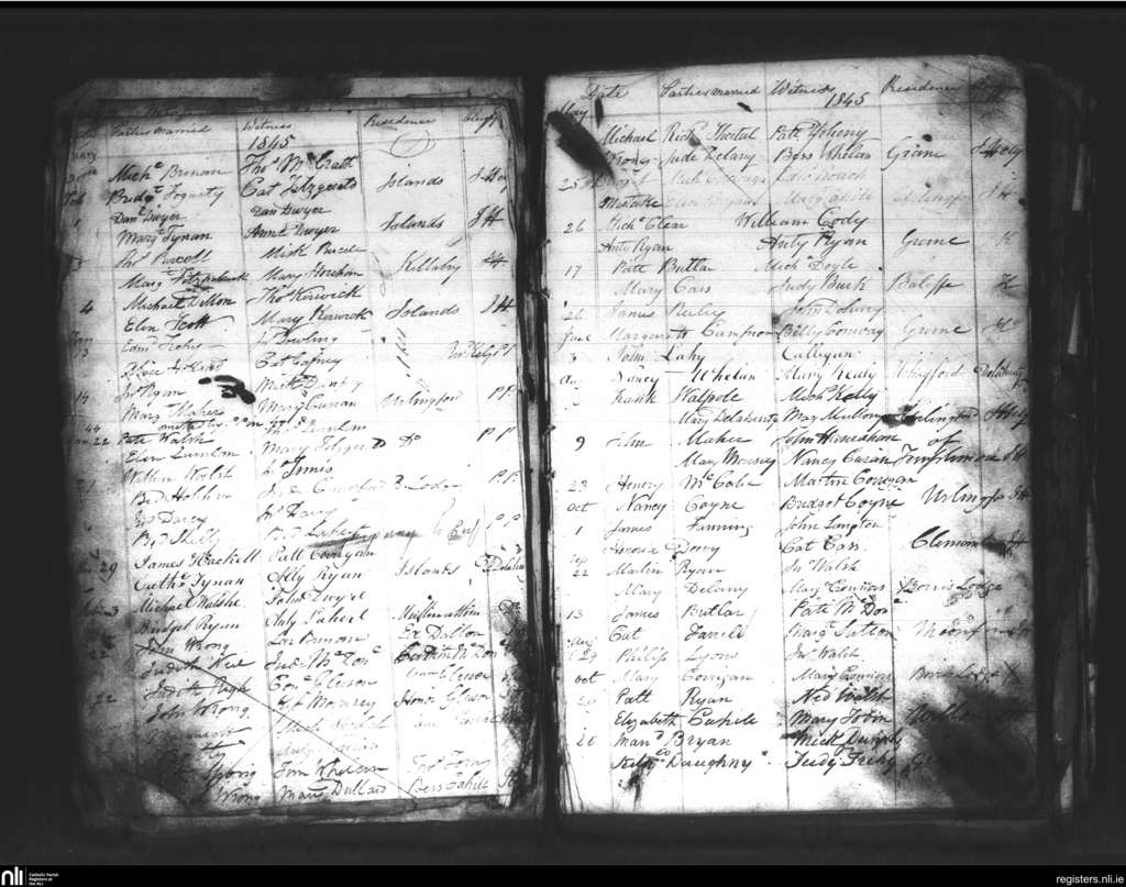 Urlingford; County of Kilkenny; Diocese of Ossory. Marriages, Jan. 1845 to Oct. 1845